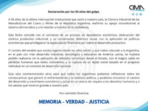 Declaración por los 50 años del golpe. A 50 años...