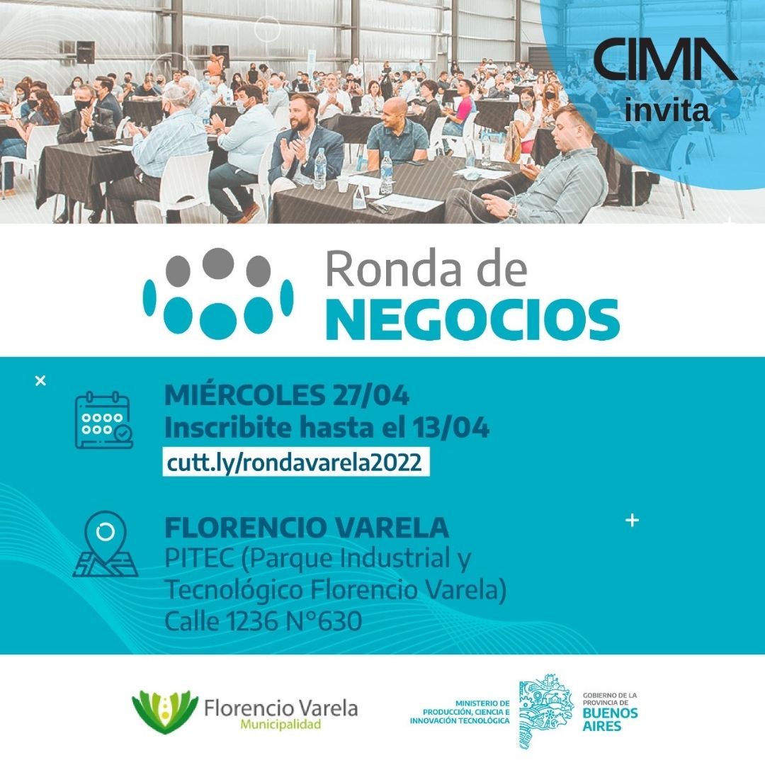 El día Miércoles 27/04, se llevará a cabo la Ronda de Negocios de Florencio Varela 2022 de la mano del Ministerio de Producción, Ciencia e Innovación Tecnológica de la Provincia de Buenos Aires y la Secretaría de Industria y Desarrollo Productivo del Municipio de Florencio Varela. La misma se realizará en el Parque Industrial y tecnológico Florencio Varela (PITEC – Calle 1236 N°630).