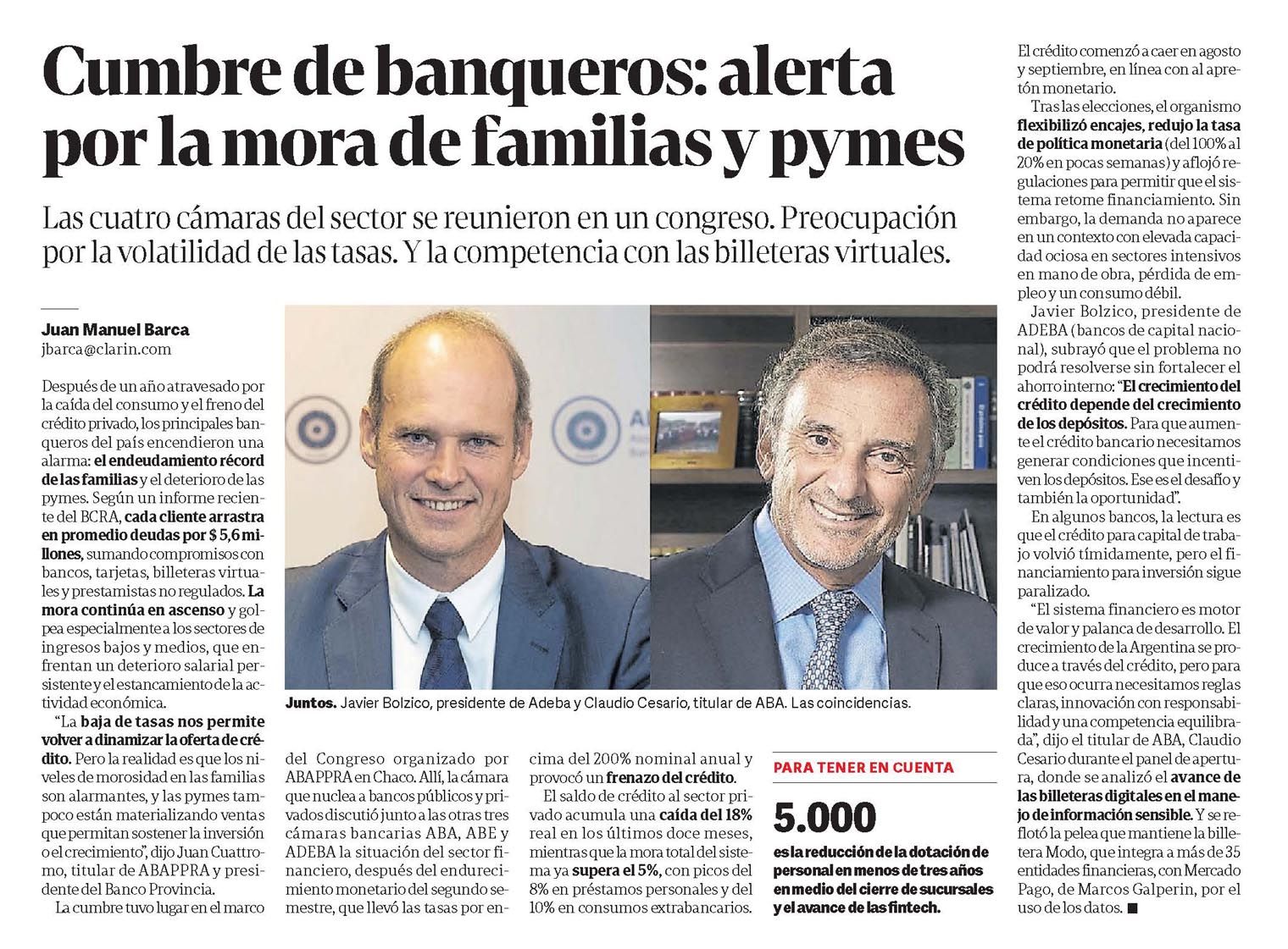 CLARÍN – Cumbre de banqueros: alerta por la mora de familias y pymes
