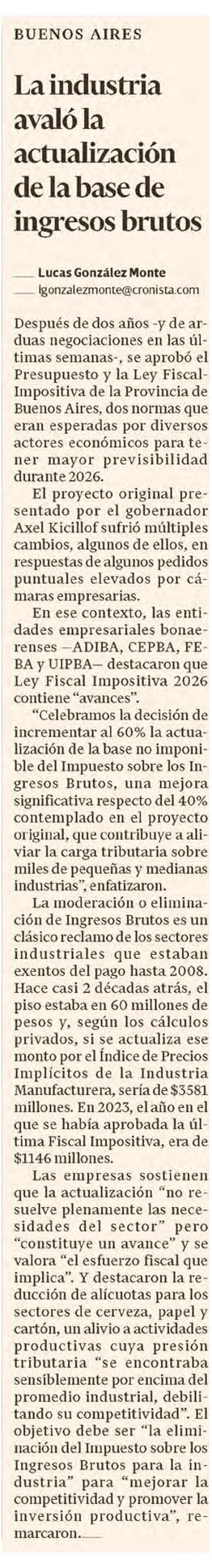 EL CRONISTA – La industria avaló la actualización de la base de ingresos brutos