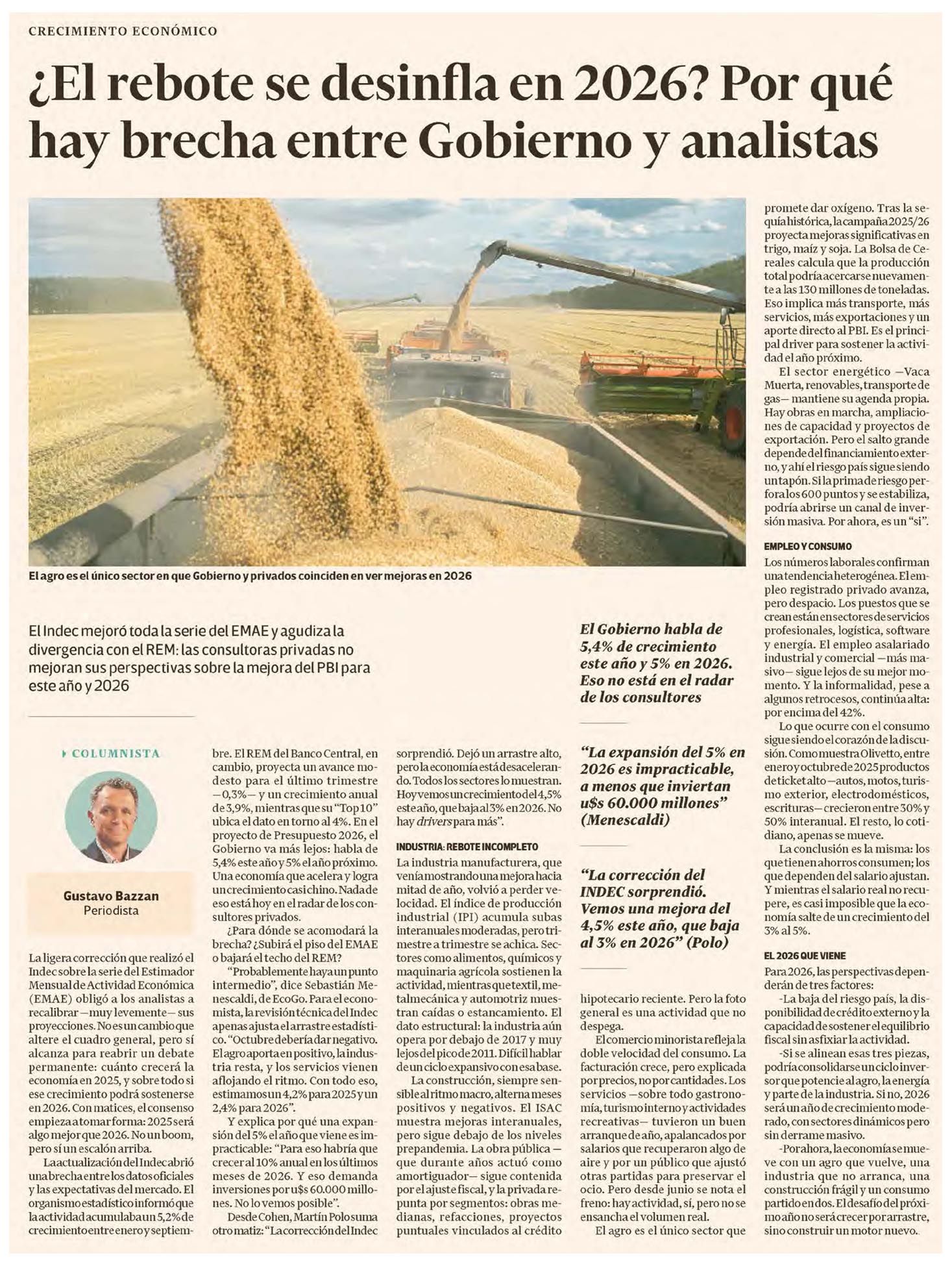 EL CRONISTA – ¿El rebote se desinfla en 2026? Por qué hay brecha entre Gobierno y analistas