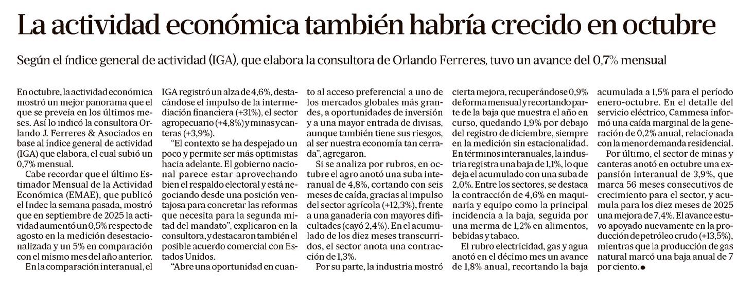 LA NACIÓN – La actividad económica también habría crecido en octubre