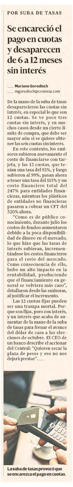 EL CRONISTA – Se encareció el pago en cuotas y desaparecen de 6 a 12 meses sin interés
