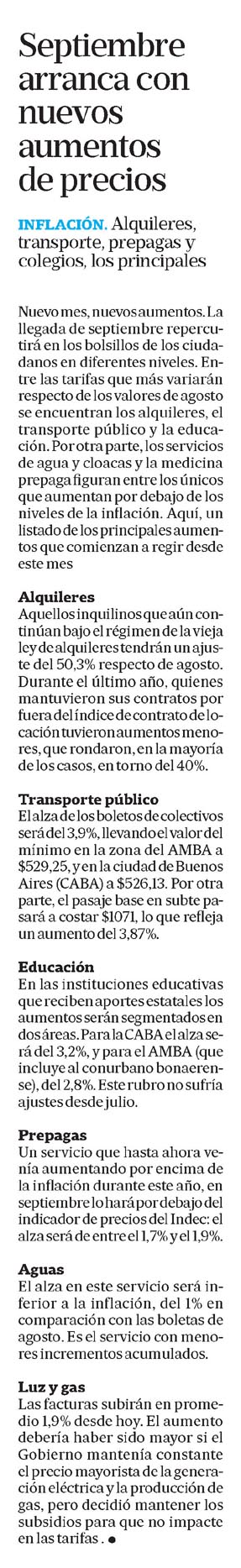 LA NACIÓN – Septiembre arranca con nuevos aumentos de precios