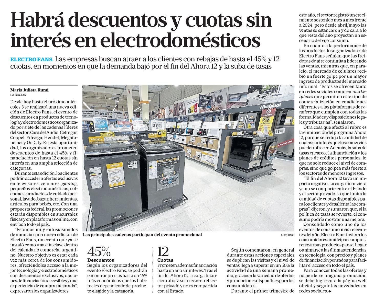 LA NACIÓN – Habrá descuentos y cuotas sin interés en electrodomésticos