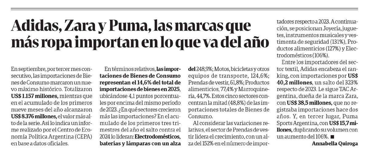 CLARÍN – Adidas, Zara y Puma, las marcas que más ropa importan en lo que va del año