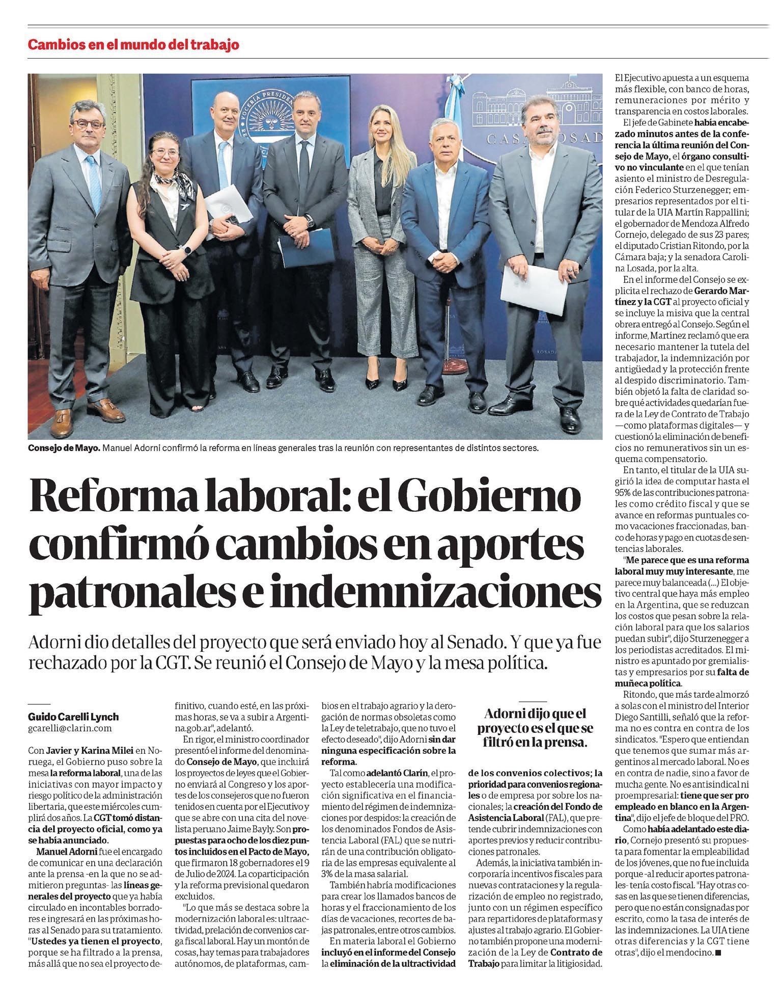 CLARÍN – Reforma laboral: el Gobierno confirmó cambios en aporte patronales e indemnizaciones