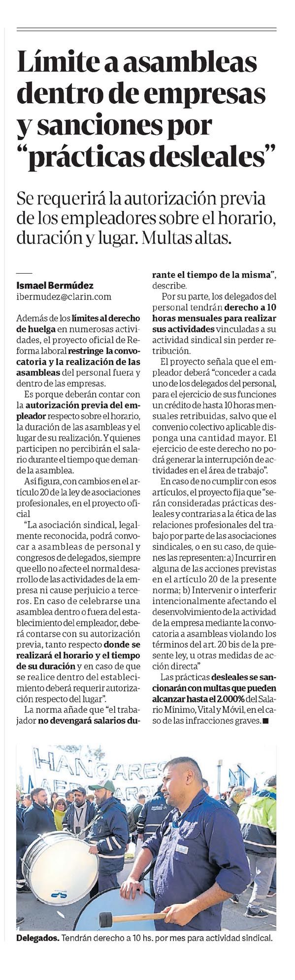 CLARÍN – Límite a asambleas dentro de empresa: sanciones por 'prácticas desleales'