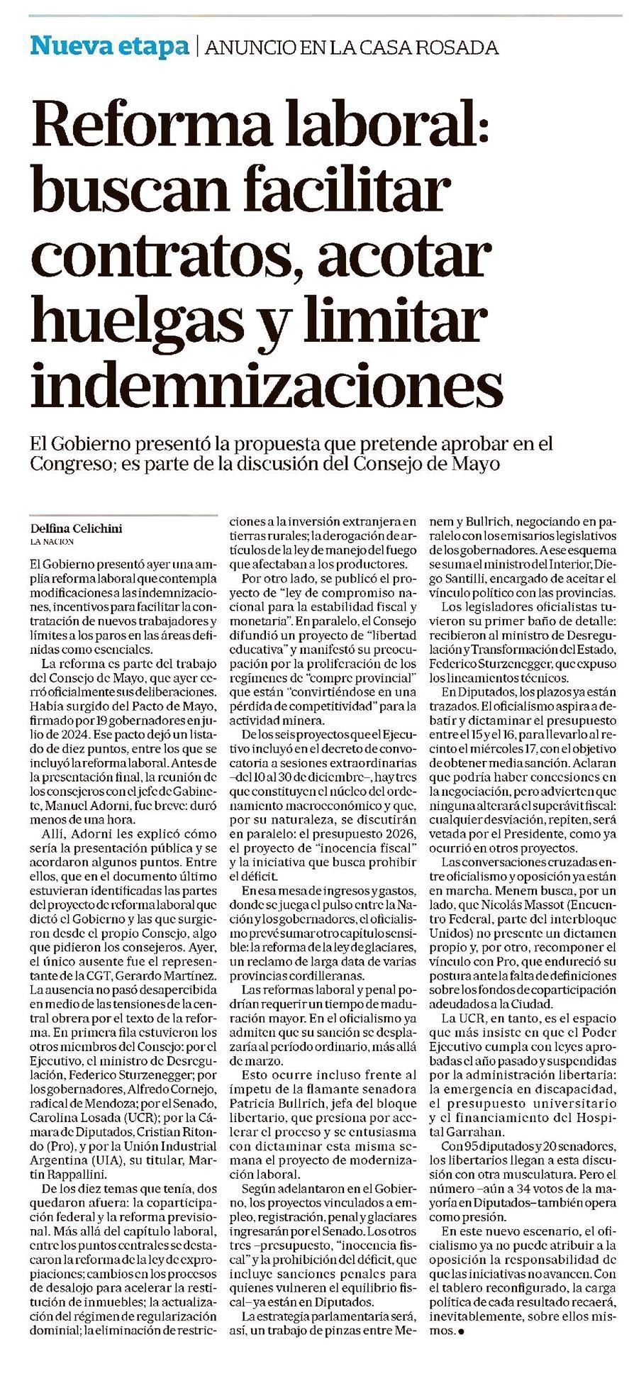 LA NACIÓN – Reforma laboral: buscan facilitar contratos, acotar huelgas y limitar indemnizaciones