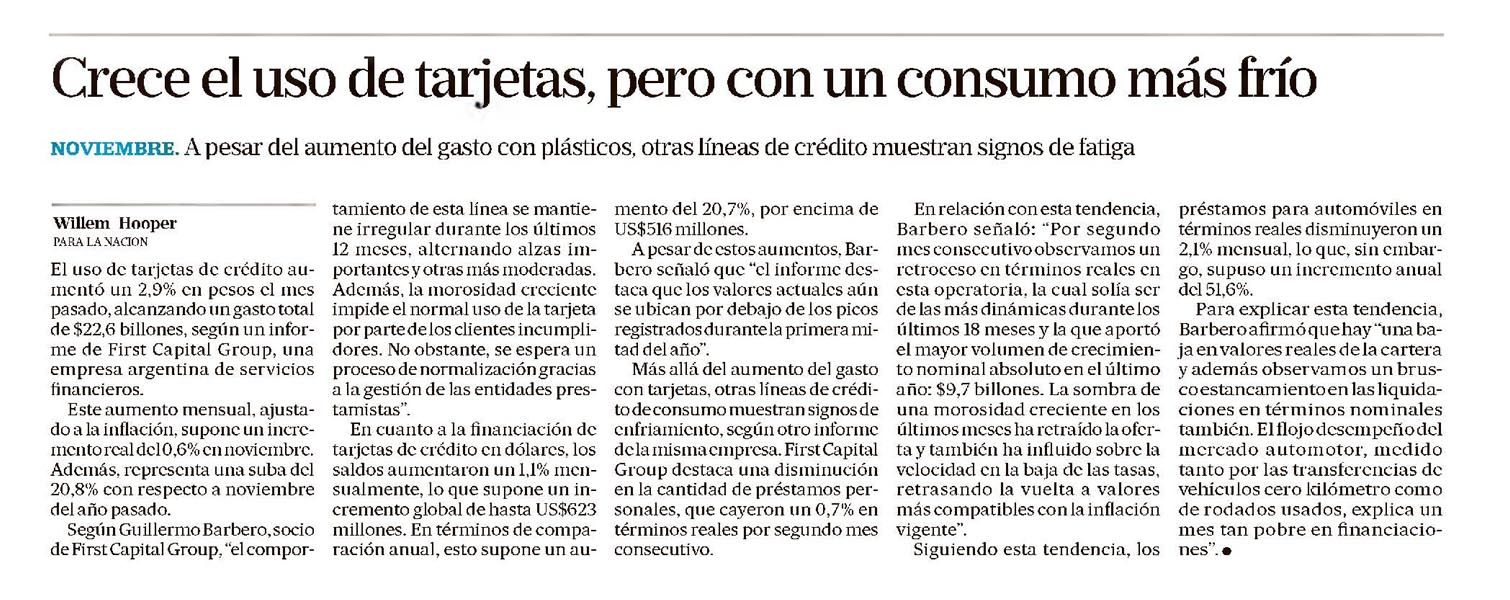 LA NACIÓN – Crece el uso de tarjetas, pero con un consumo más frío