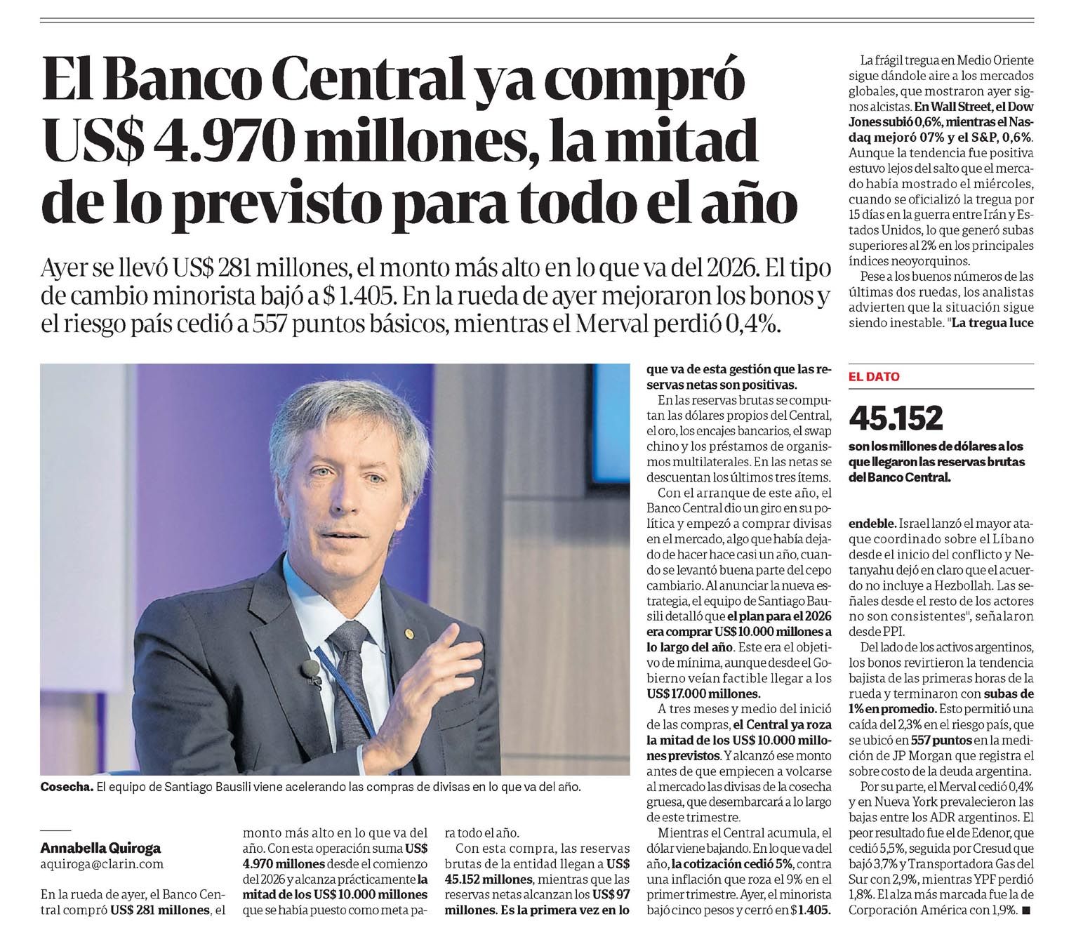 CLARÍN – El Banco Central ya compró US$ 4.970 millones, la mitad de lo previsto para todo el año