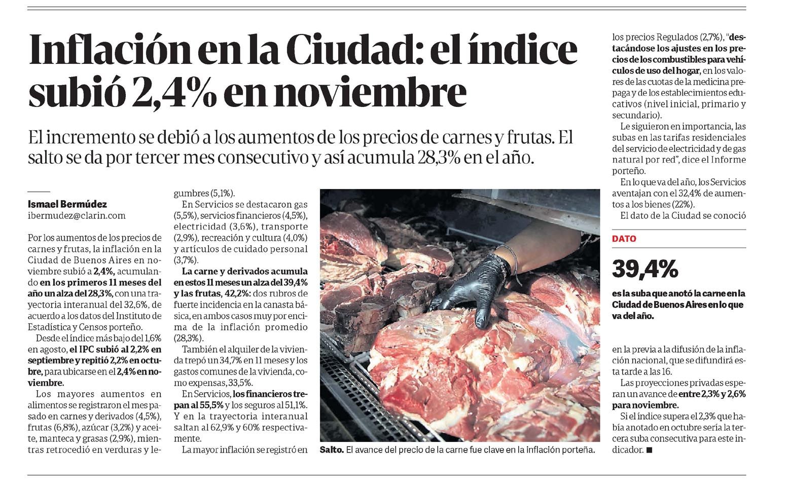 CLARÍN – Inflación en la Ciudad: el índice subió 2,4% en noviembre
