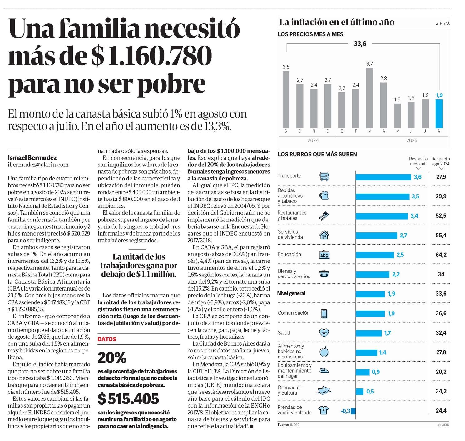 CLARÍN – Una familia necesitó más de $ 1.160.780 para no ser pobre