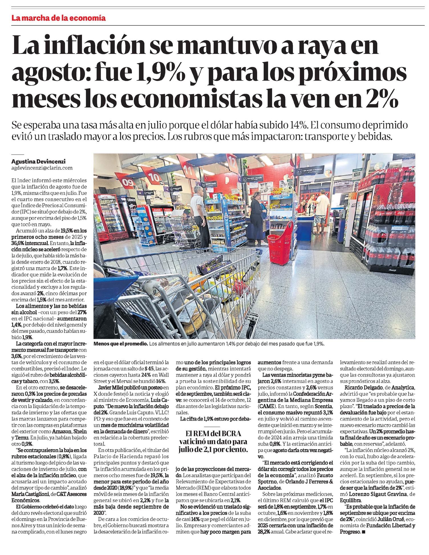 Se esperaba una tasa más alta en julio porque el dólar había subido 14%. El consumo deprimido evitó un traslado mayor a los precios. Los rubros que más impactaron: transporte y bebidas.