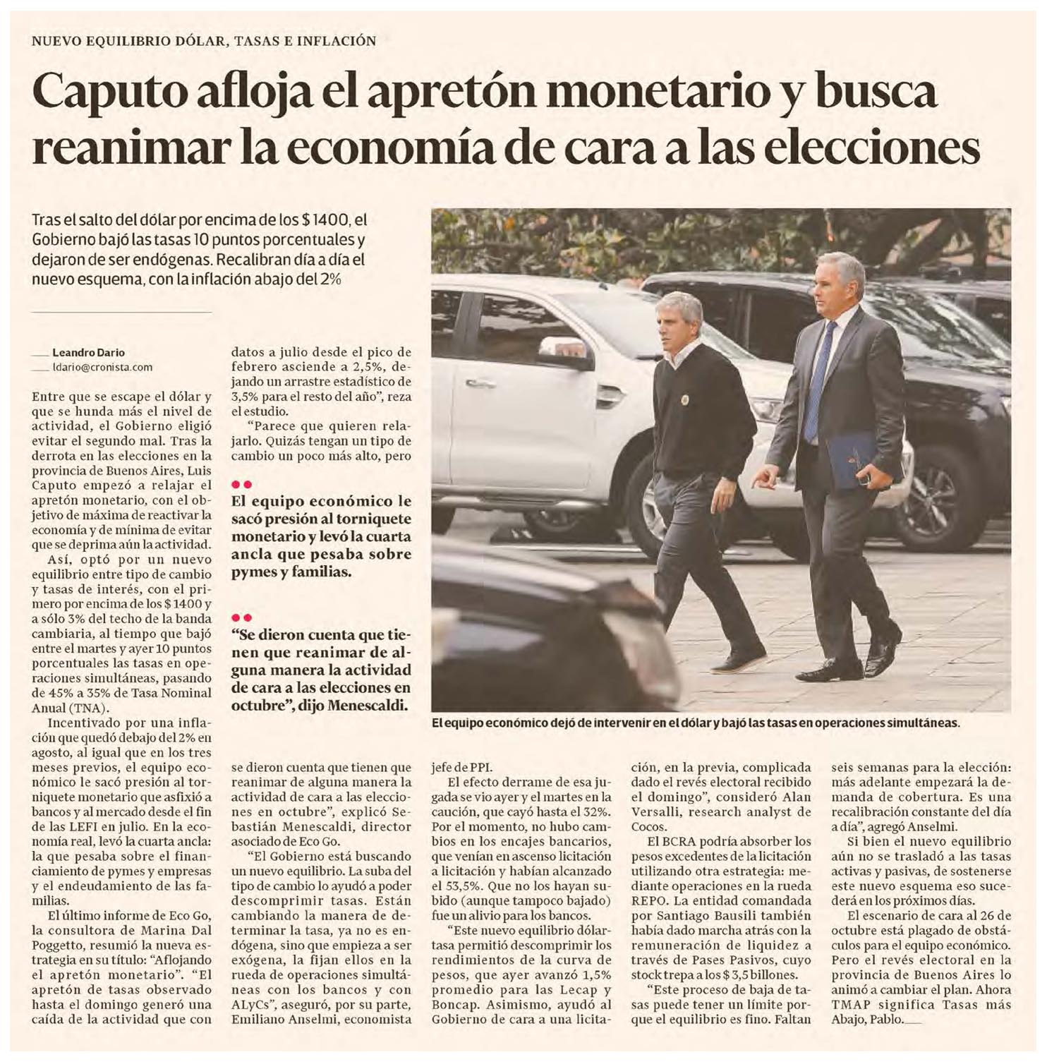 Tras el salto del dólar por encima de los $ 1400, el Gobierno bajó las tasas 10 puntos porcentuales y dejaron de ser endógenas. Recalibran día a día el nuevo esquema, con la inflación abajo del 2%