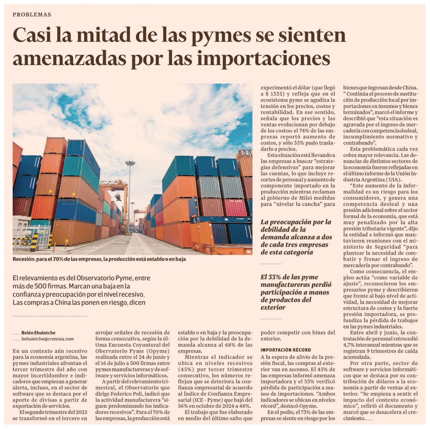 EL CRONISTA – Casi la mitad de las pymes se sienten amenazadas por las importaciones