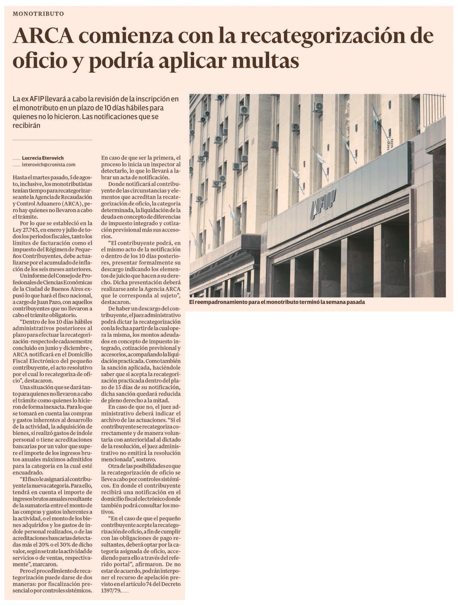 EL CRONISTA – ARCA comienza con la recategorización de oficio y podría aplicar multas