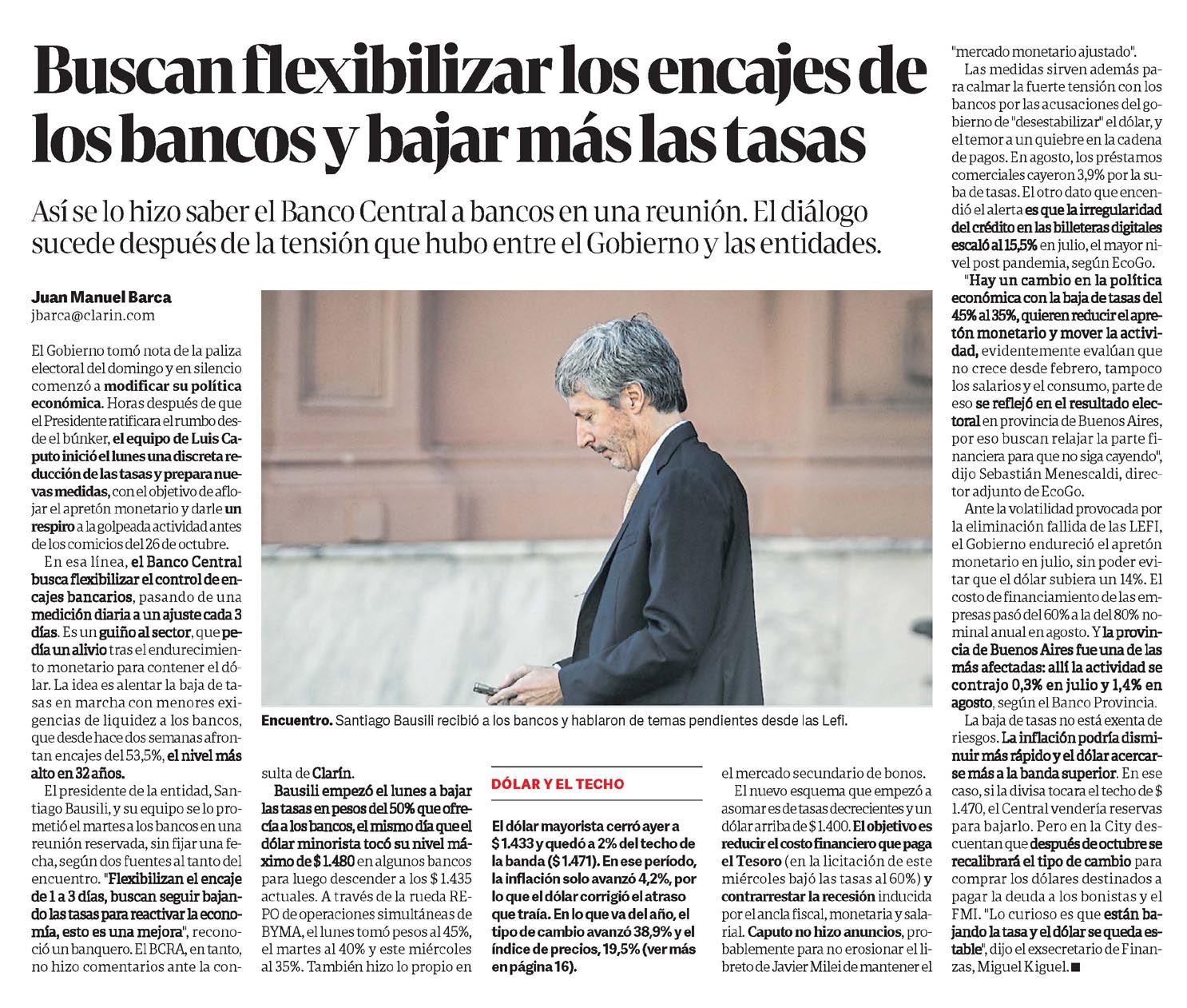CLARÍN – Buscan flexibilizar los encajes de los bancos y bajar más las tasas