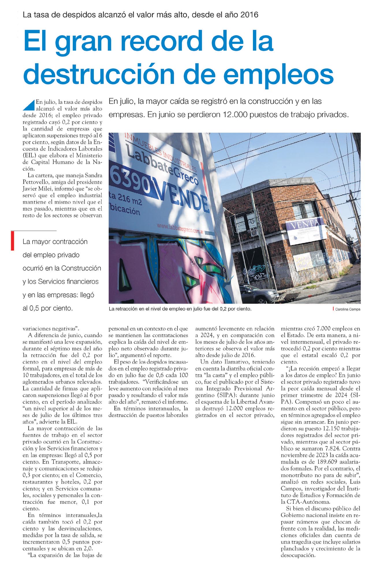PÁGINA/12 – El gran record de la destrucción de empleos