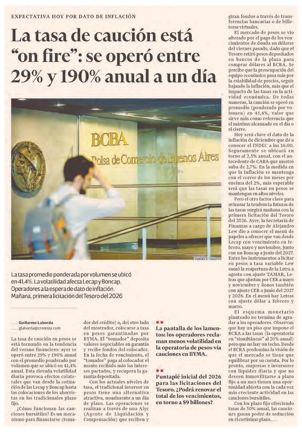 EL CRONISTA – La tasa de caución está on fire se operó entre 29% y 190% anual a un día