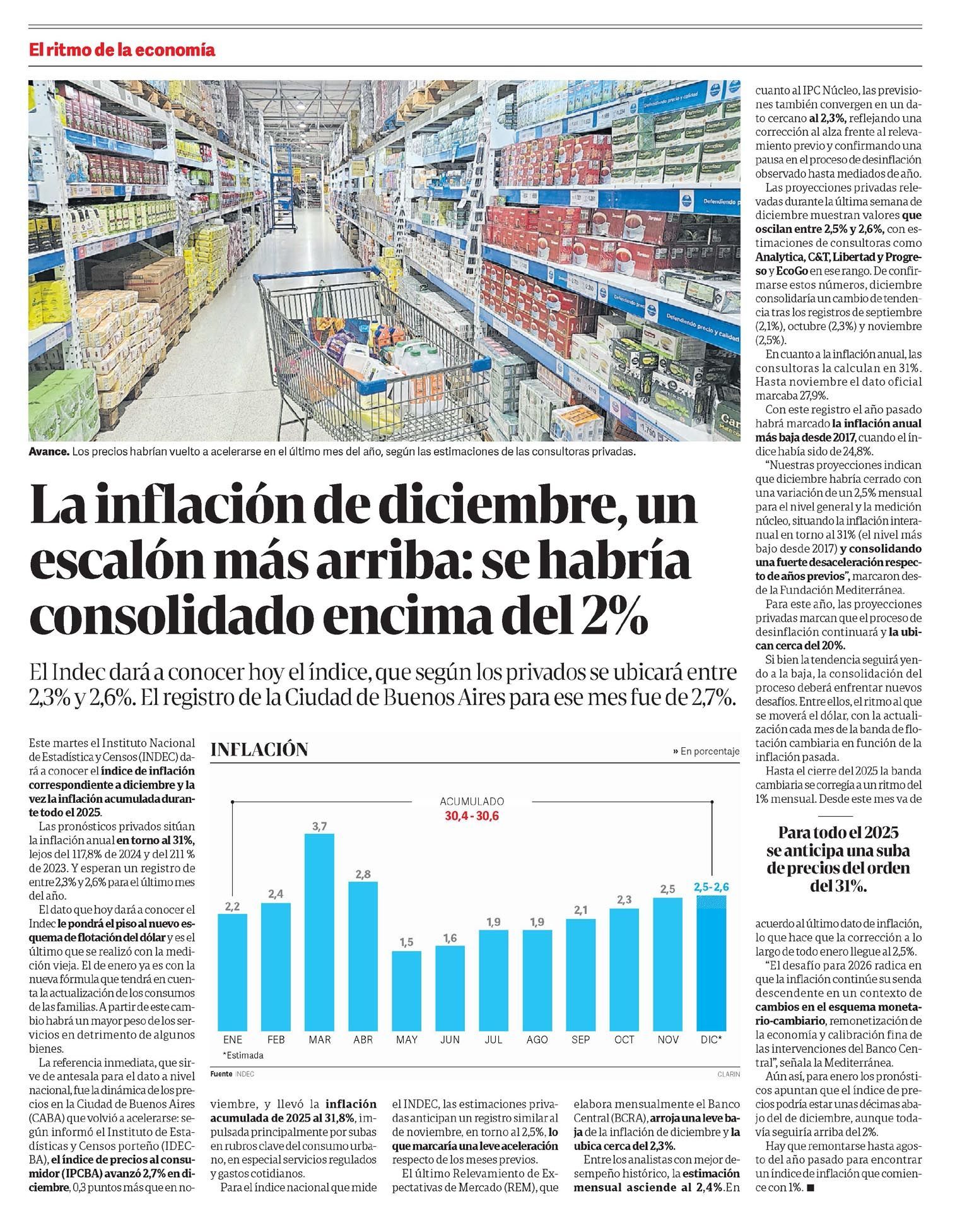 CLARÍN – La inflación de diciembre, un escalón más arriba: se habría consolidado encima del 2%