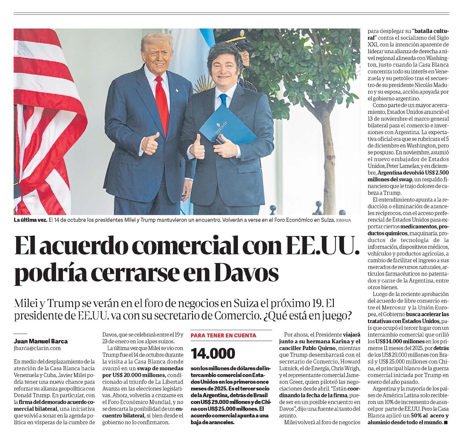 CLARÍN – El acuerdo comercial con EEUU podría cerrarse en Davos