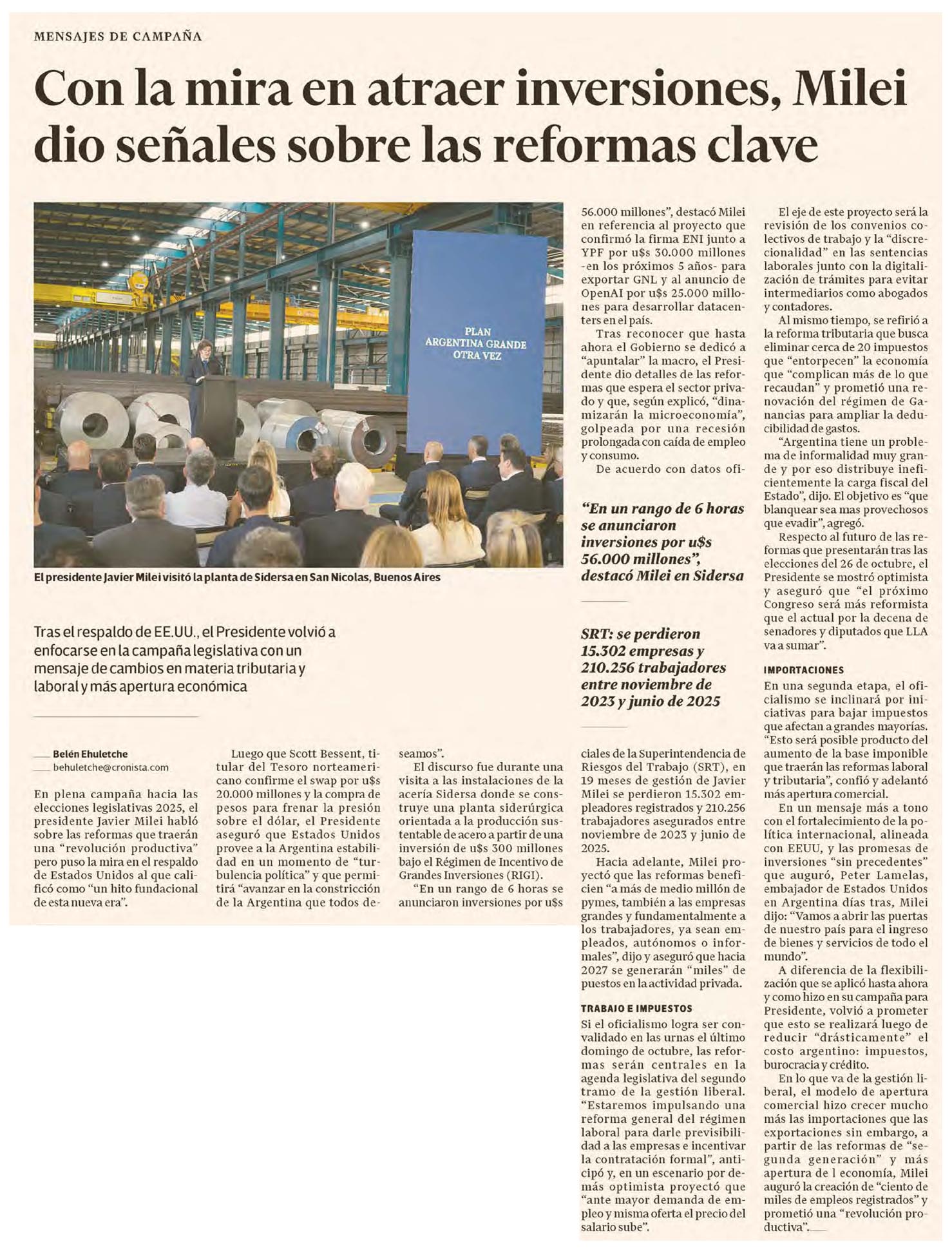 EL CRONISTA – Con la mira en atraer inversiones, Milei dio señales sobre las reformas clave