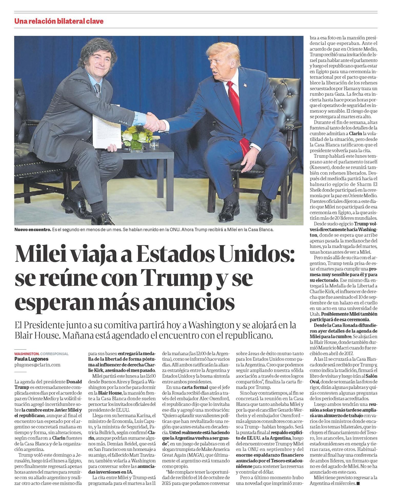 CLARÍN – Milei viaja a Estados Unidos: se reúne con Trump y se esperan más anuncios