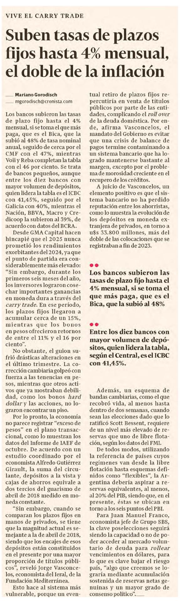 EL CRONISTA – Suben tasas de plazos fijos hasta 4% mensual, el doble de la inflación