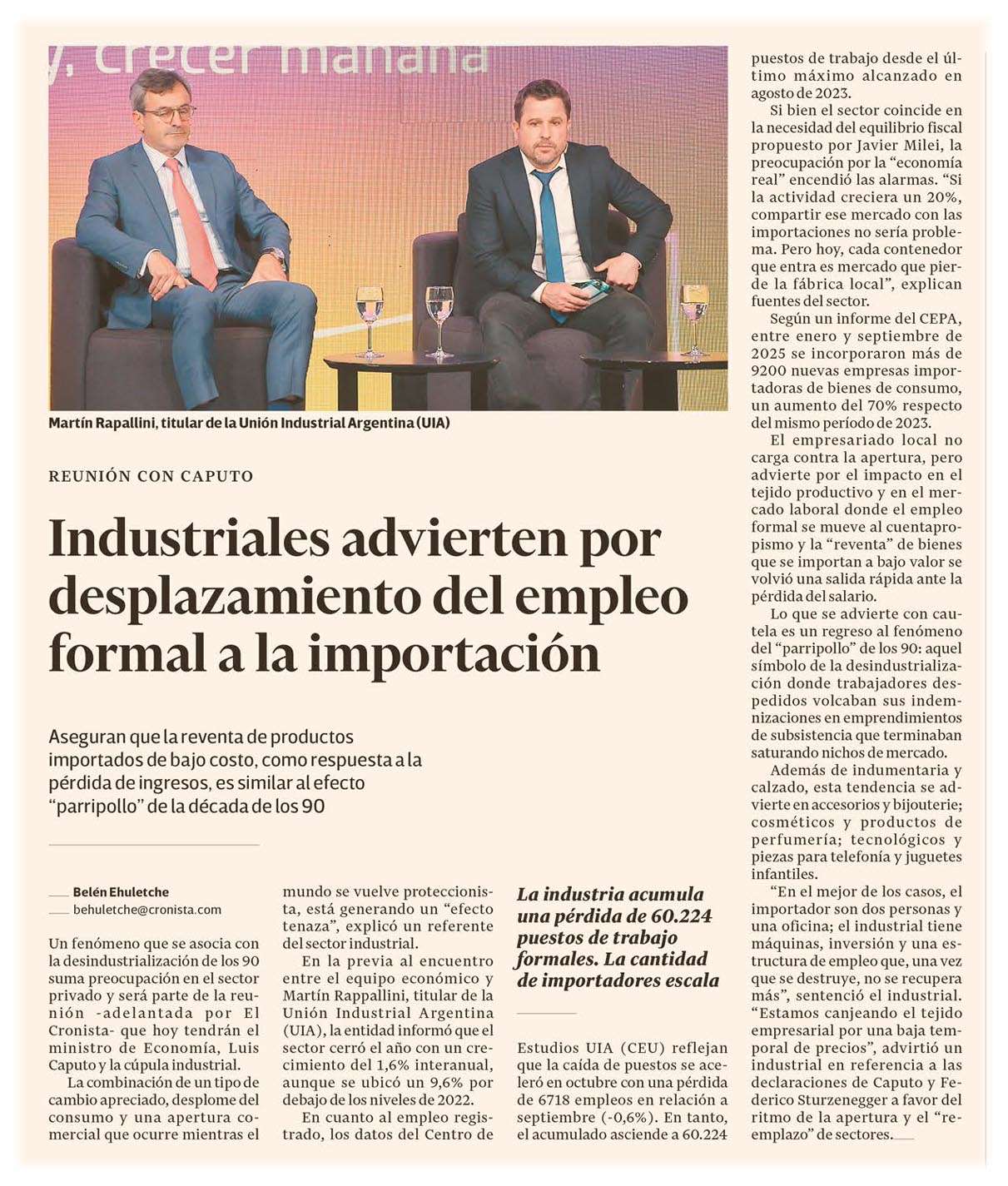 EL CRONISTA – Industriales advierten por desplazamiento del empleo formal a la importación