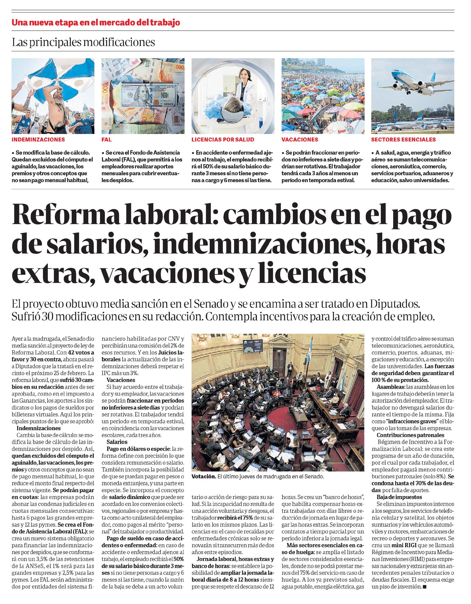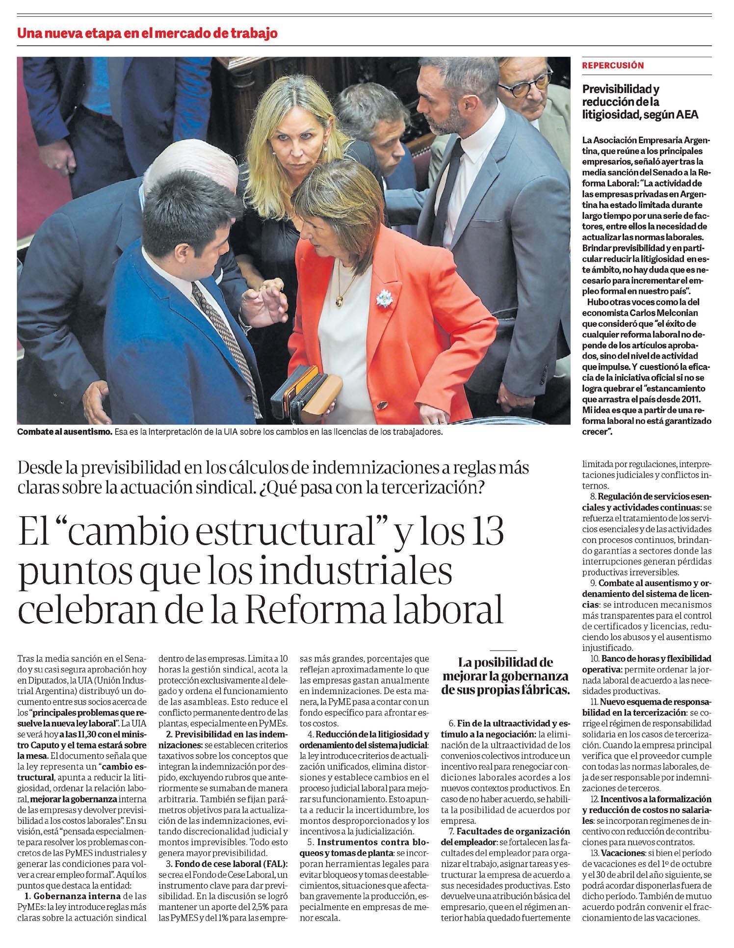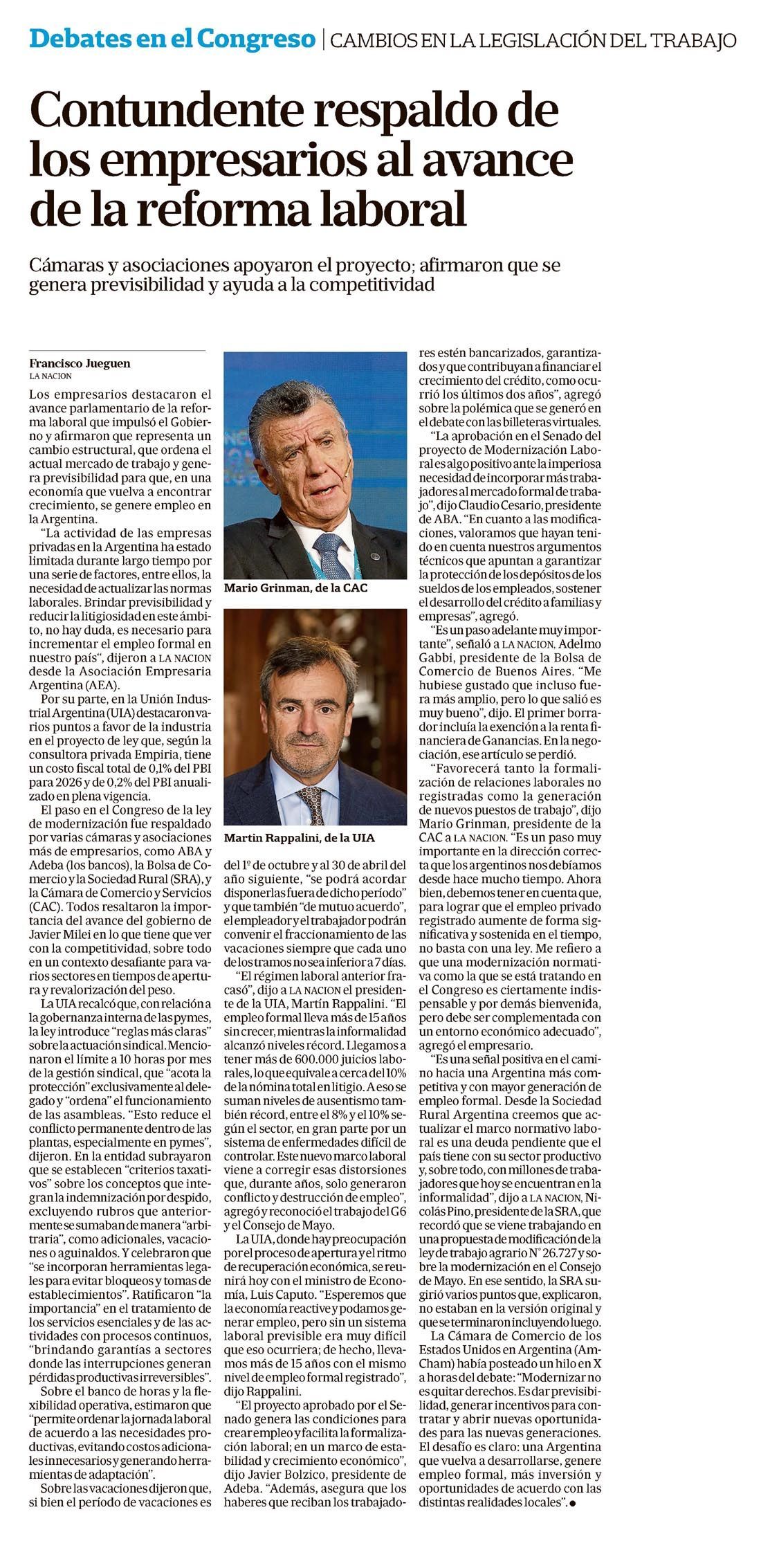 LA NACIÓN – Contundente respaldo de los empresarios al avance de la reforma laboral