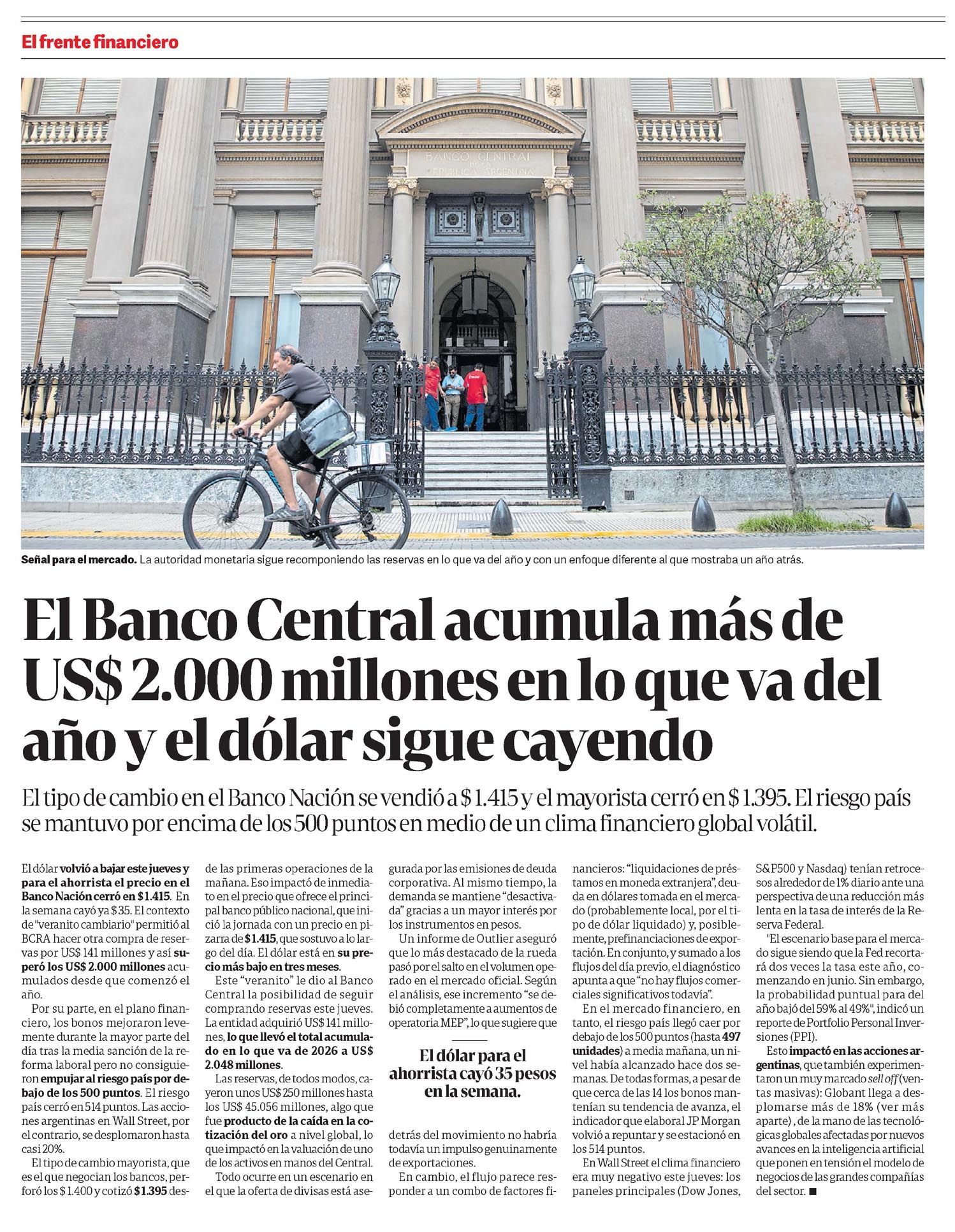 El tipo de cambio en el Banco Nación se vendió a $ 1.415 y el mayorista cerró en $ 1.395. El riesgo país se mantuvo por encima de los 500 puntos en medio de un clima financiero global volátil.