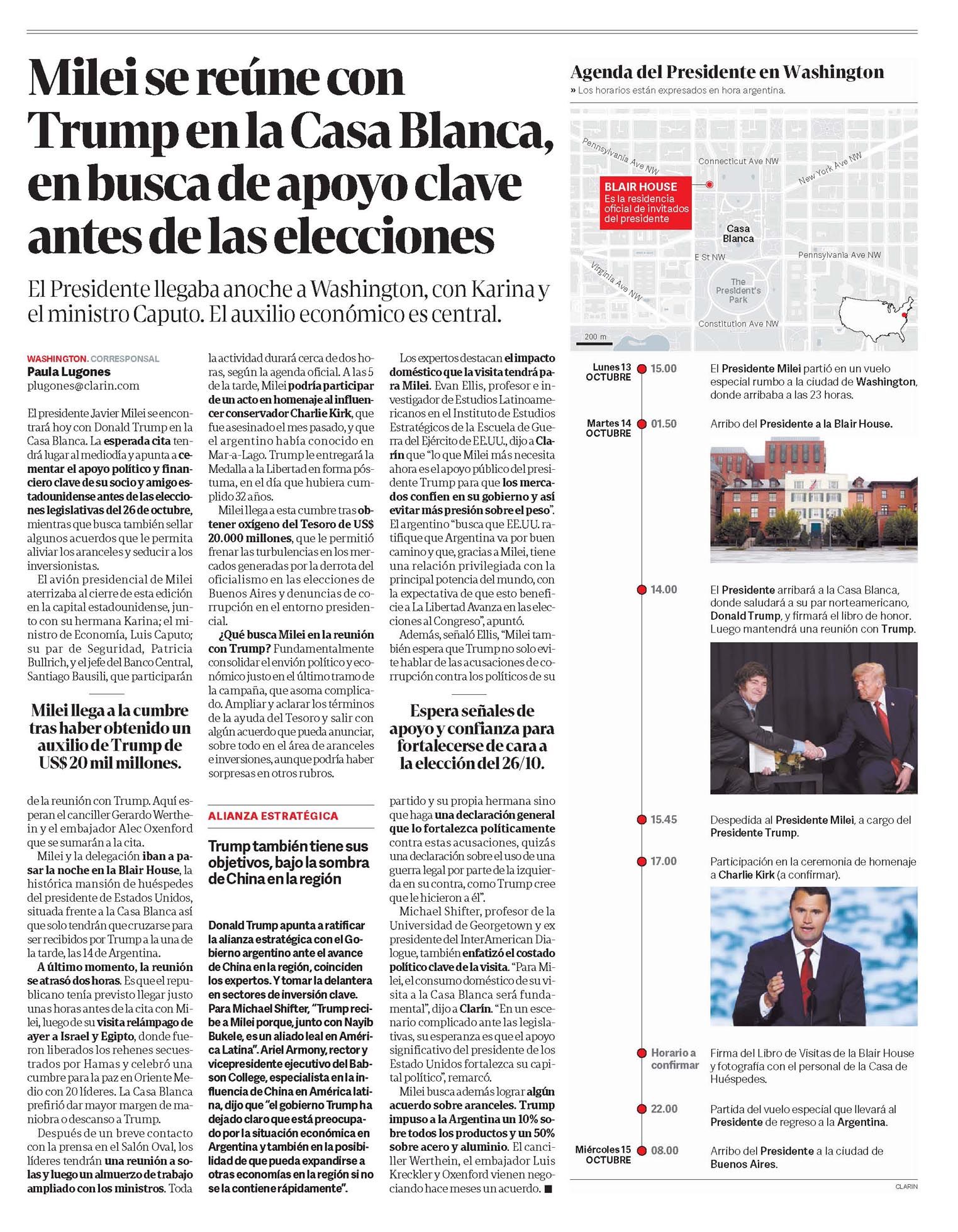 CLARÍN – Milei se reúne con Trump en la Casa Blanca, en busca de apoyo clave antes de las elecciones