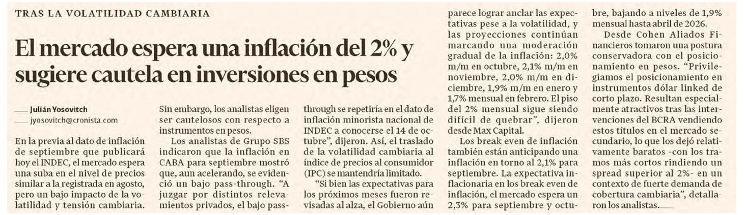 EL CRONISTA – El mercado espera una inflación del 2% y sugiere cautela en inversiones en pesos