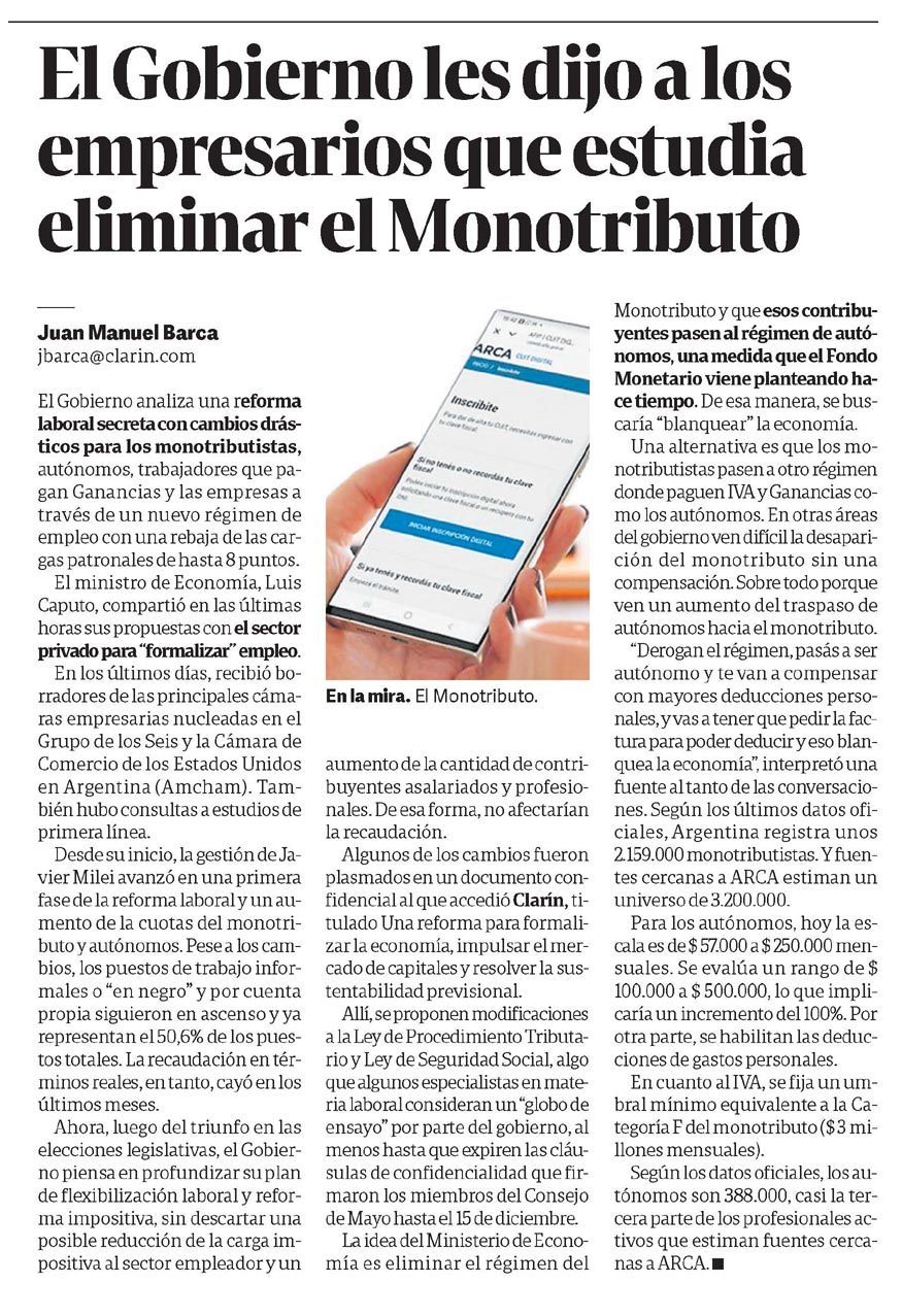 CLARÍN – El Gobierno les dijo a los empresarios que estudia eliminar el Monotributo