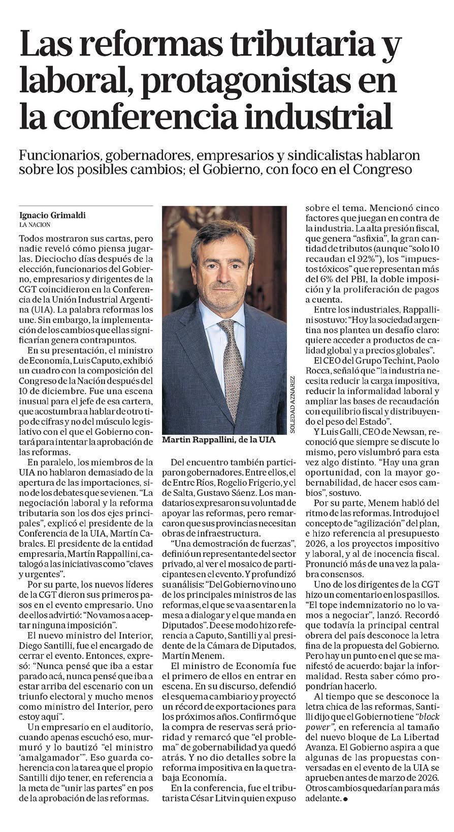 LA NACIÓN – Las reformas tributaria y laboral, protagonistas en la conferencia industrial