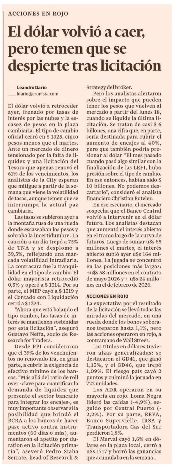 EL CRONISTA – El dólar volvió a caer, pero temen que se despierte tras licitación
