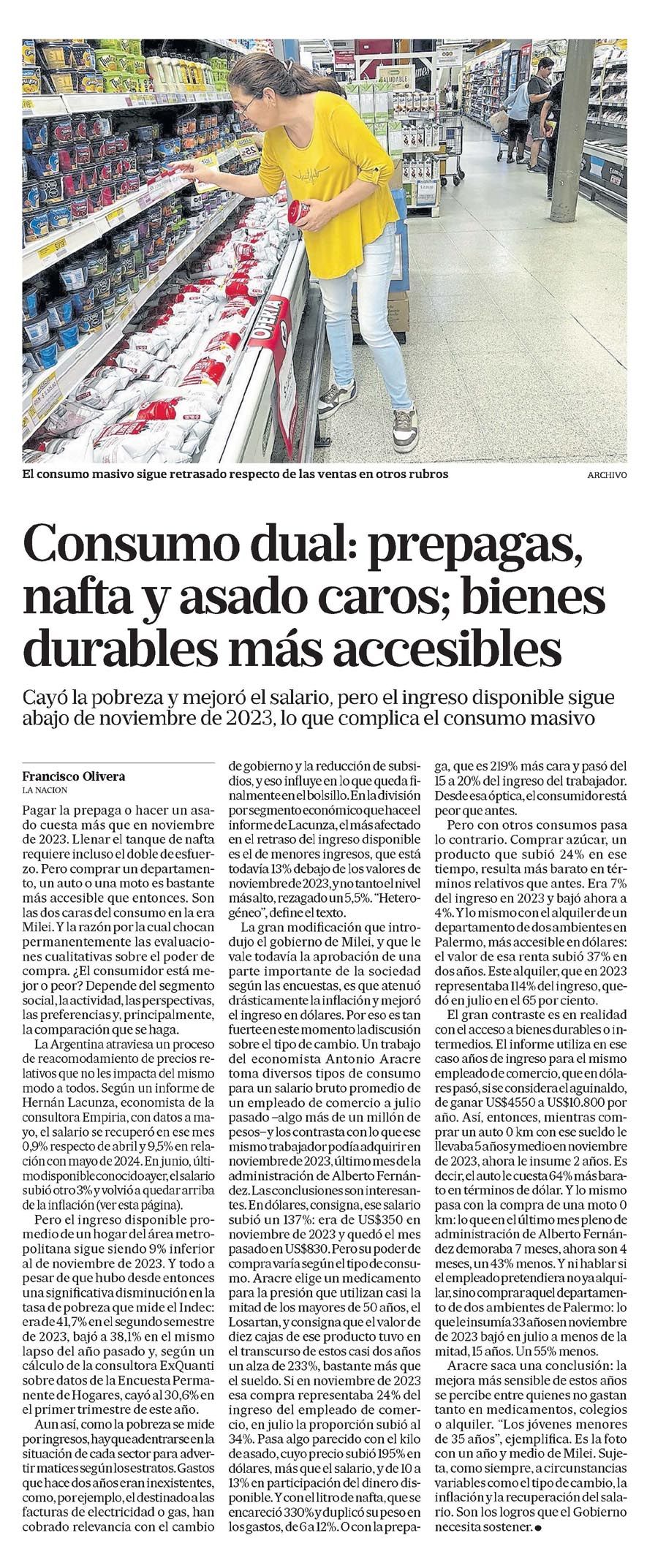 LA NACIÓN – Consumo dual: prepagas, nafta y asado caros; bienes durables más accesibles