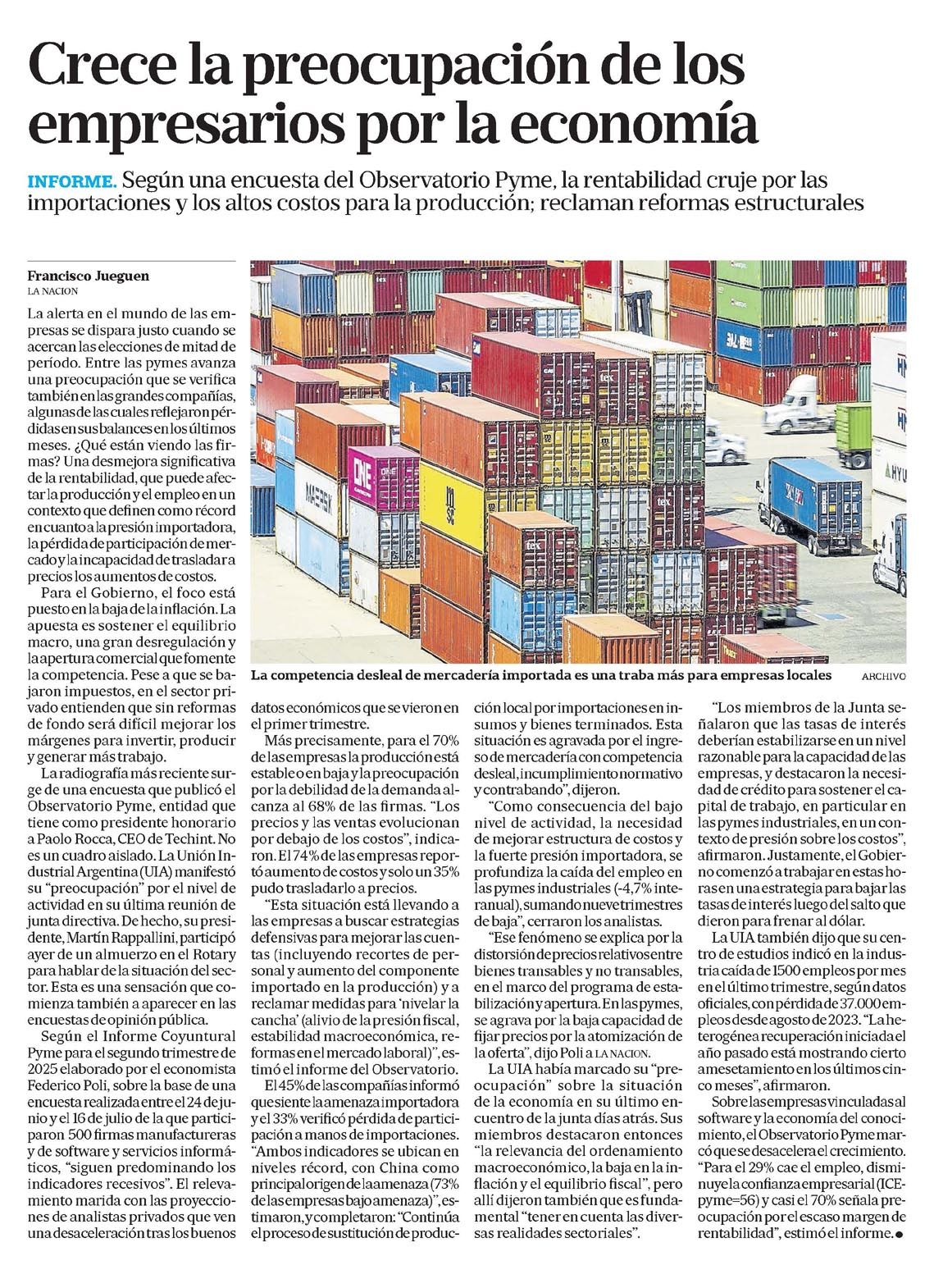 LA NACIÓN – Crece la preocupación de los empresarios por la economía