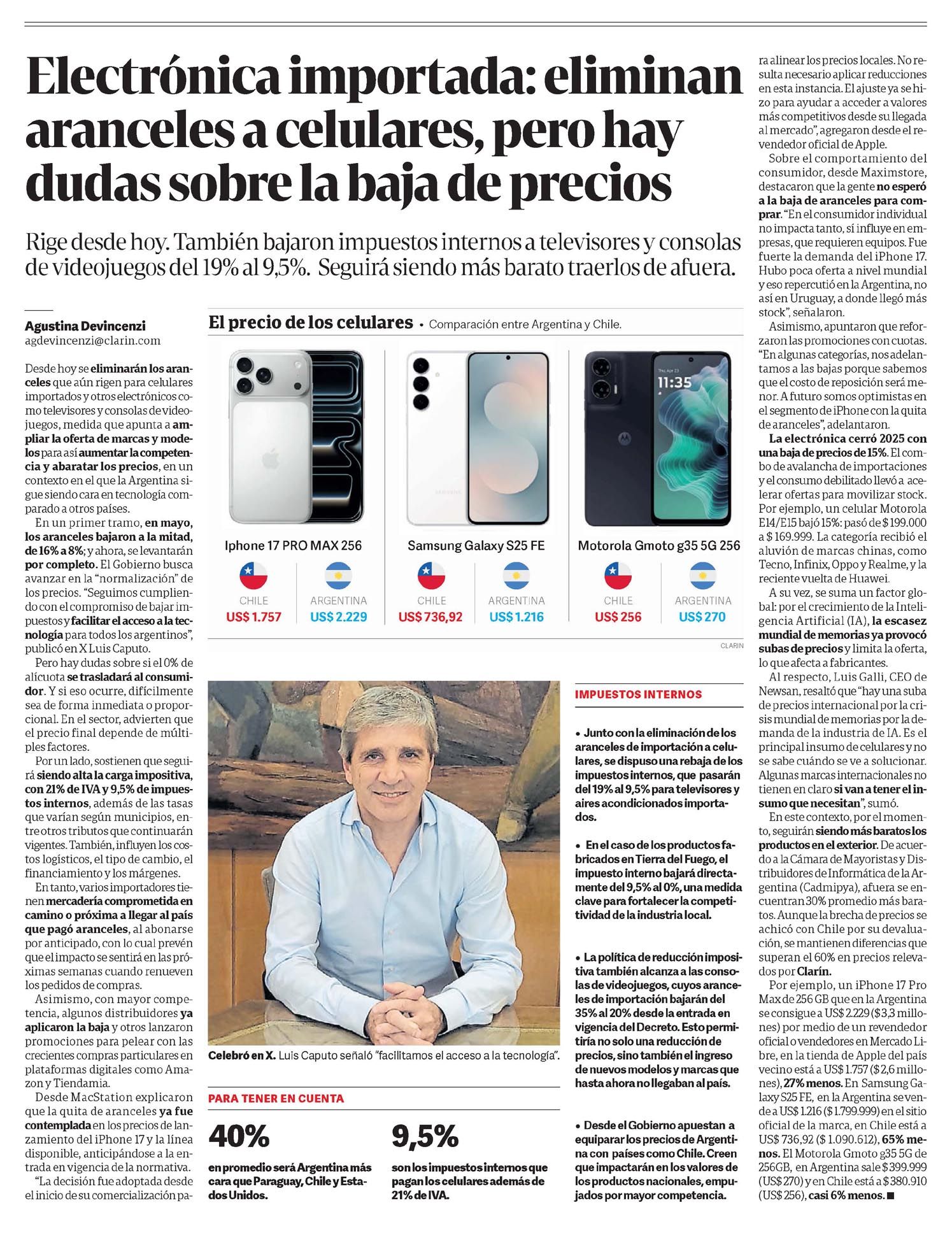 Rige desde hoy. También bajaron impuestos internos a televisores y consolas de videojuegos del 19% al 9,5%. Seguirá siendo más barato traerlos de afuera.