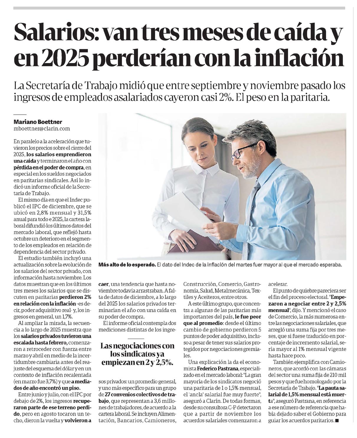 CLARÍN – Salarios: van tres meses de caída y en 2025 perderían con la inflación