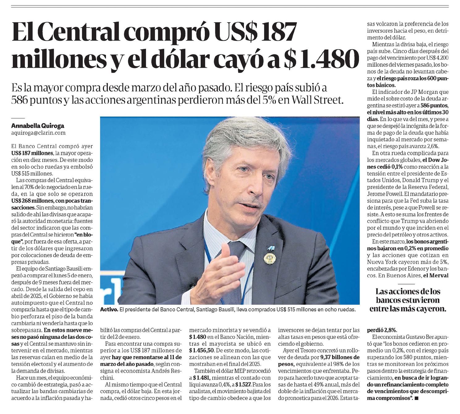 CLARÍN – El Central compró US$ 187 millones y el dólar cayó a $1.480