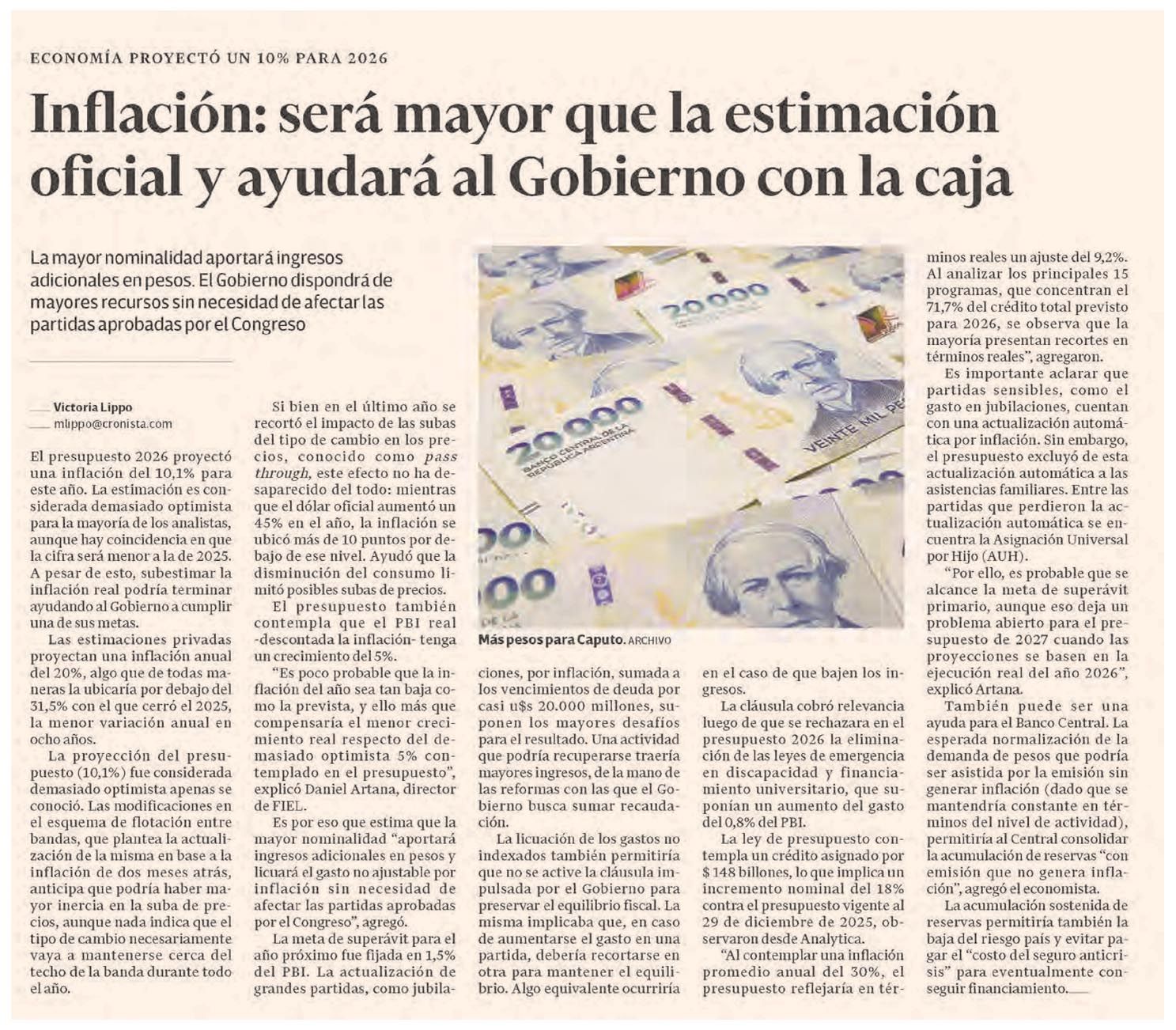 EL CRONISTA – Inflación: será mayor que la estimación oficial y ayudará al Gobierno con la caja