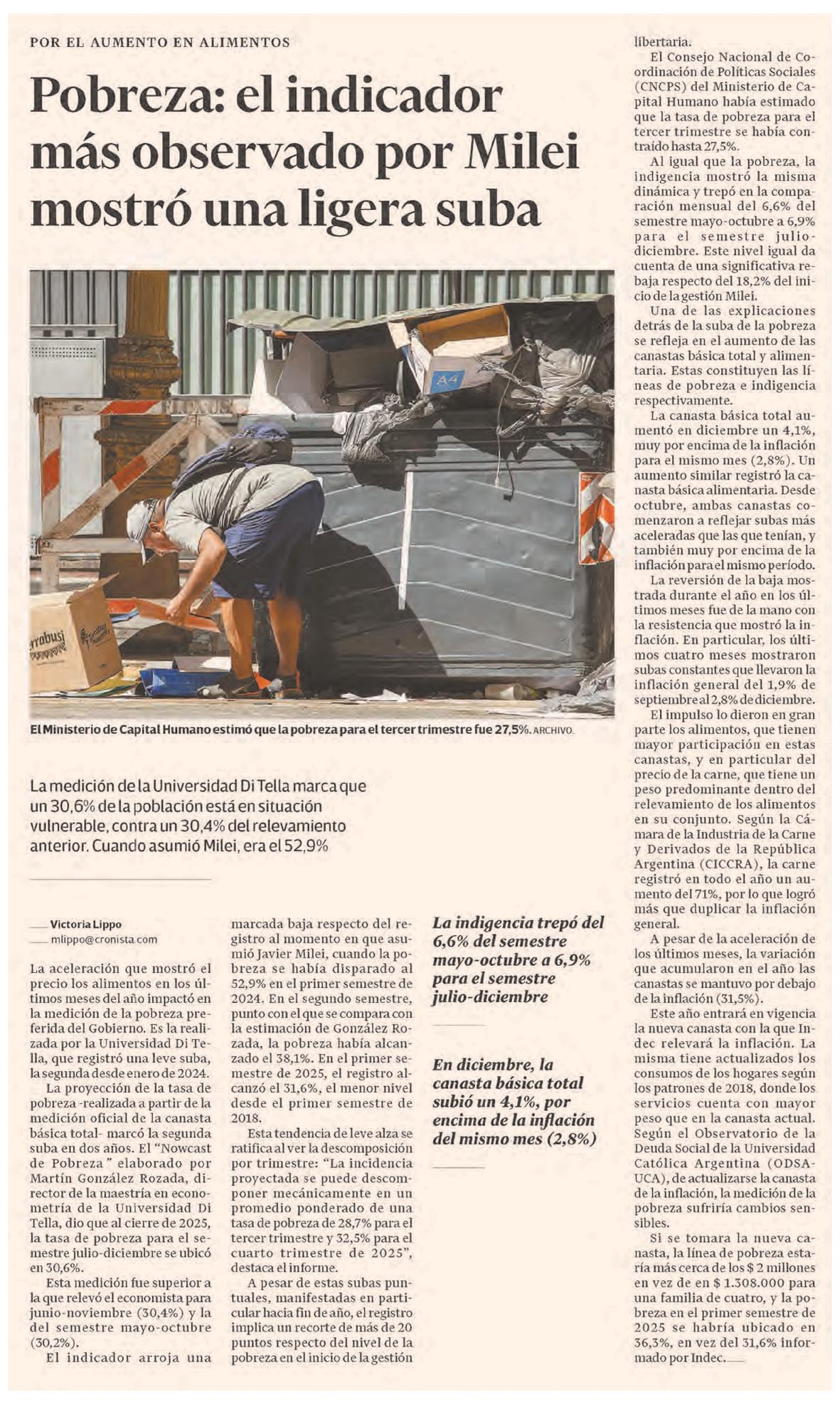 EL CRONISTA – Pobreza: el indicador más observado por Milei mostró una ligera suba