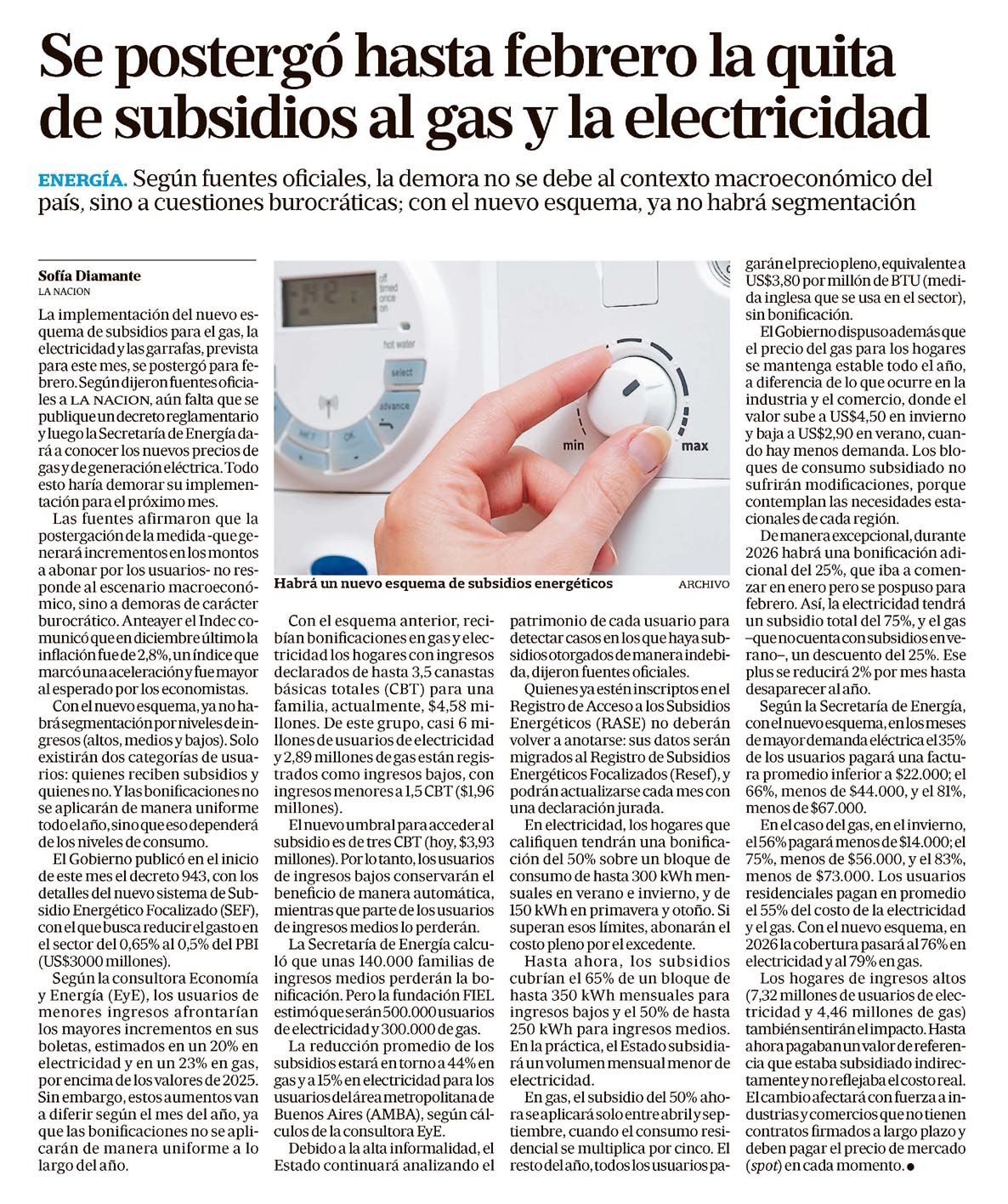 LA NACIÓN – Se postergó hasta febrero la quita de subsidios al gas y la electricidad