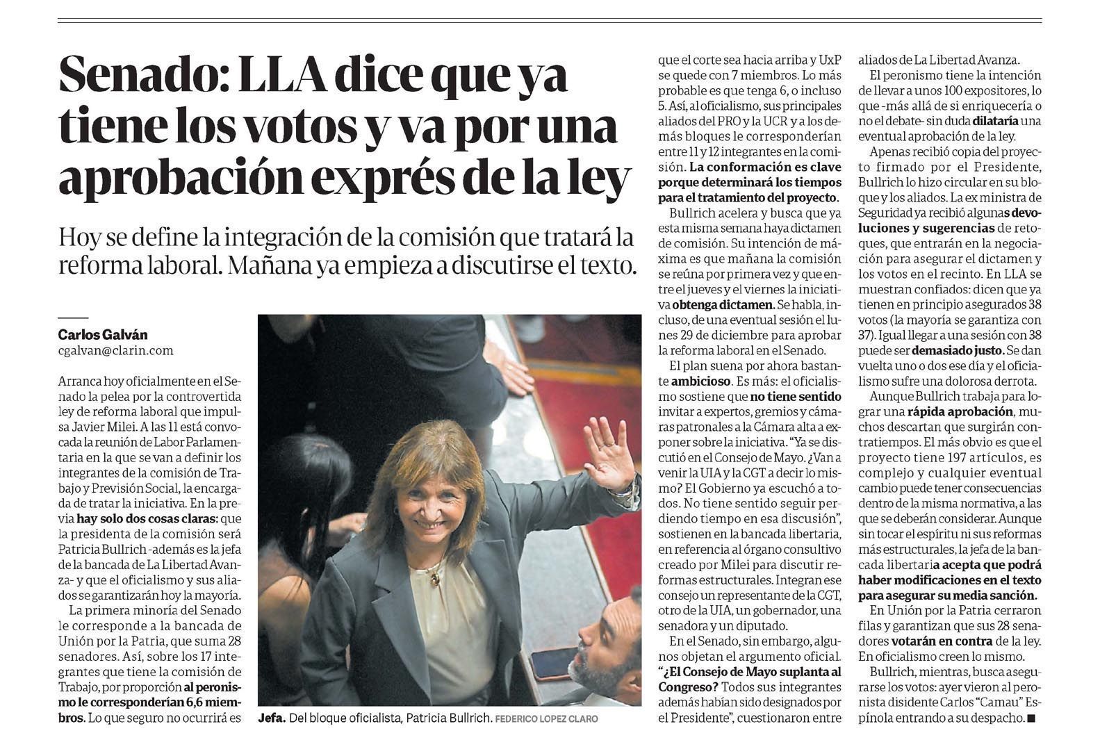 CLARÍN – Senado: LLA dice que ya tiene los votos y va por una aprobación exprés de la ley