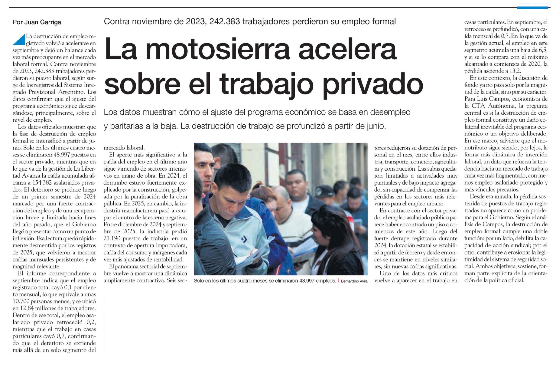 PÁGINA/12 – La motosierra acelera sobre el trabajo privado