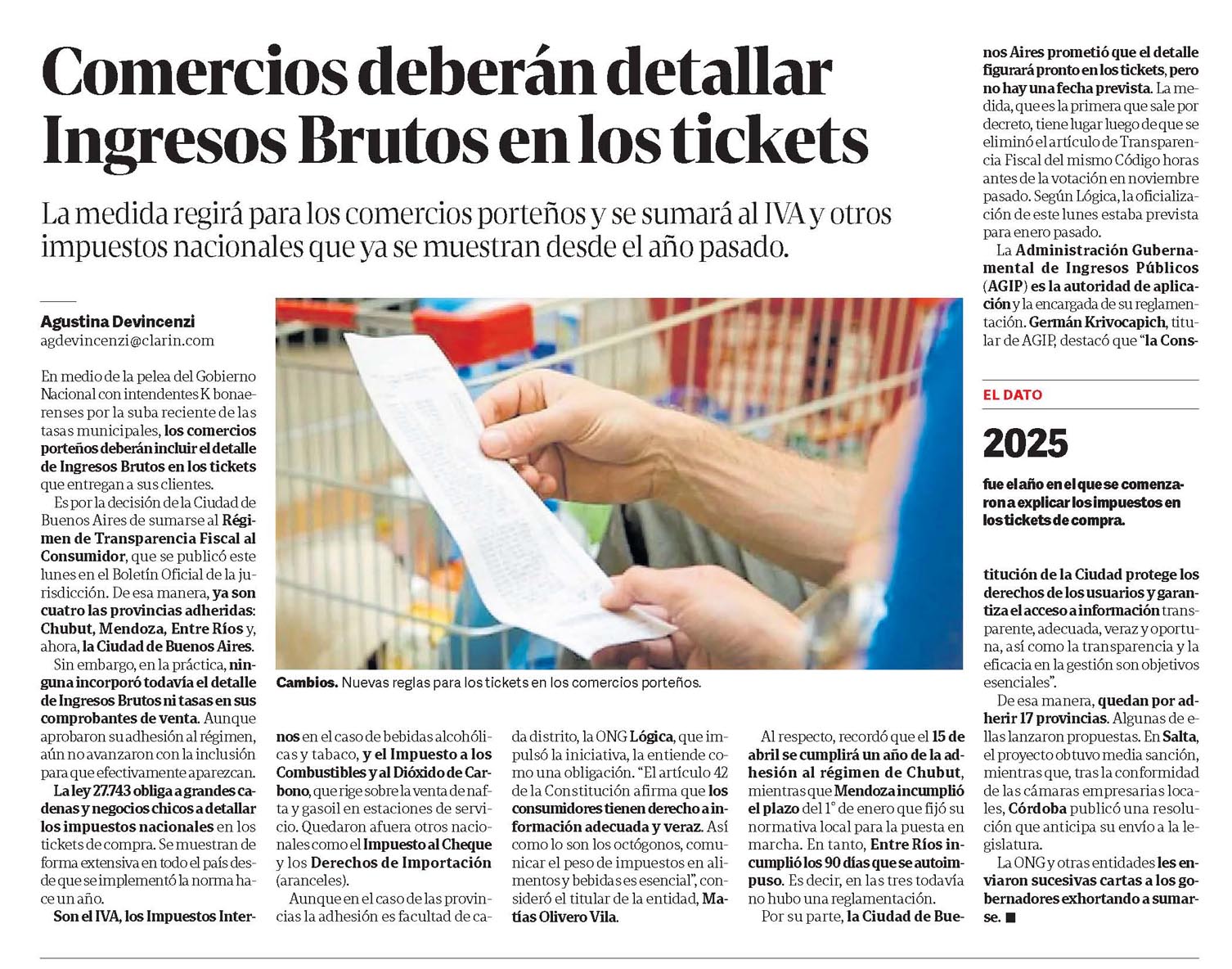 CLARÍN – Comercios deberán detallar Ingresos Brutos en los tickets