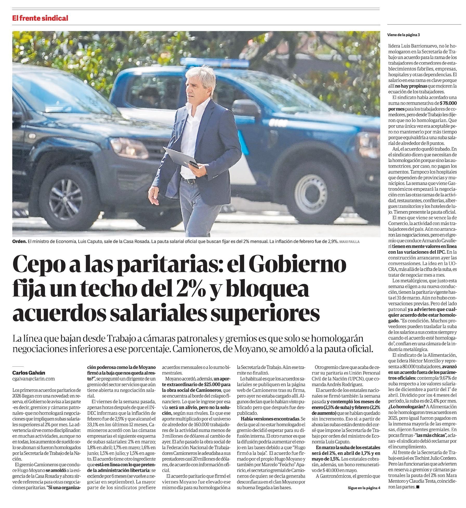 CLARÍN – Cepo a las paritarias: el Gobierno fija un techo del 2% y bloquea acuerdos salariales superiores