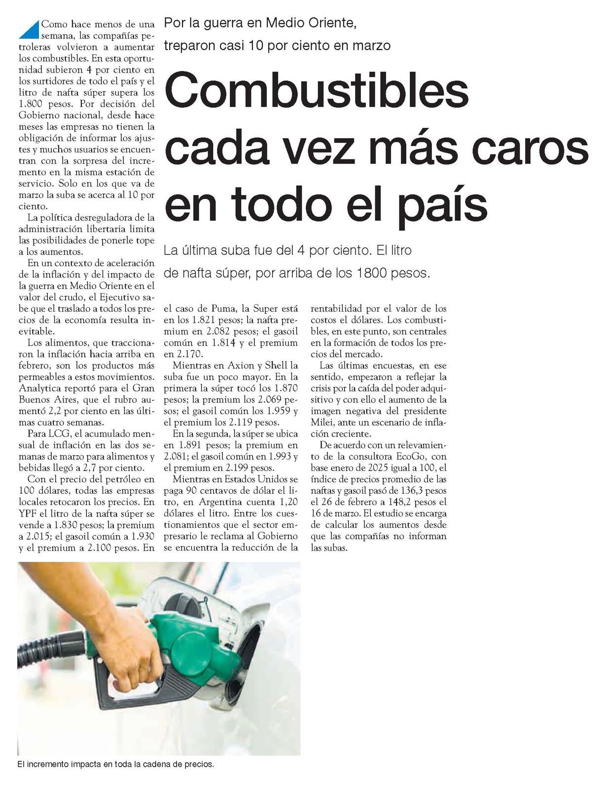 PÁGINA/12 – Combustibles cada vez más caros en todo el país